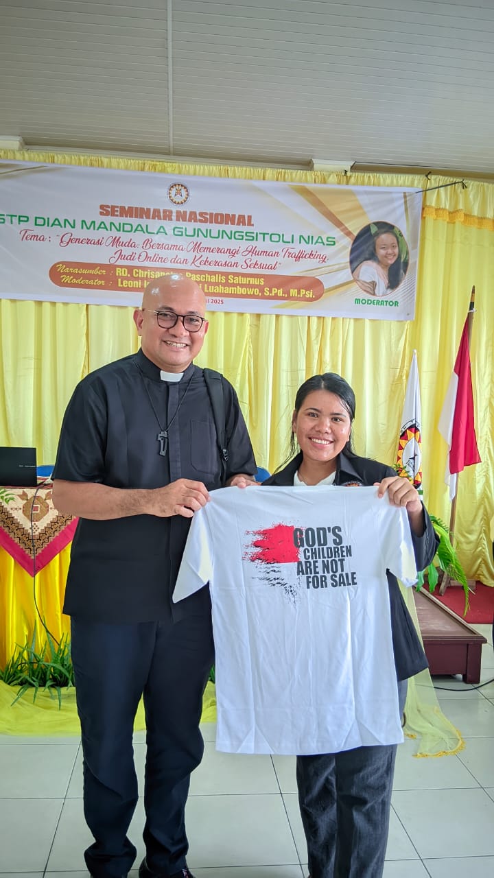 Senin, 27 April 2025 STP Dian Mandala Gunungsitoli menyelenggarakan Seminar Nasional dengan Tema "Generasi Muda: Bersama Memerangi Human Trafficking, Judi Online dan Kekerasan Seksual". Seminar ini diadakan di ruang auditorium kampus STP Dian Mandala Gunungsitoli yang dihadiri oleh dosen, tenaga kependidikan dan semua mahasiswa. Sementara narasumber pada seminar nasional ini ialah RD Chrisanctus Paschalis Saturnus, atau akrab disapa dengan Romo Paschal.